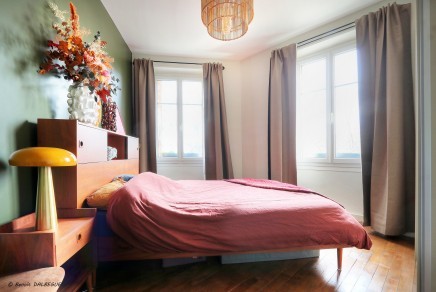 L’espace nuit comprend deux chambres sur parquet, une salle d’eau rénovée, ainsi que des WC indépendants.