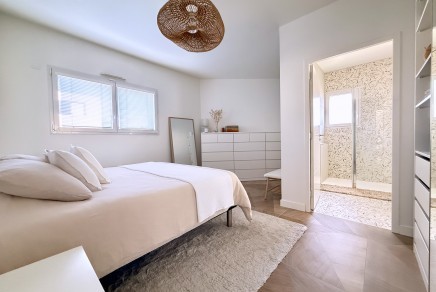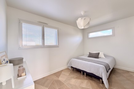 Elle dispose au RDC d'une entrée avec dégagement, une suite parentale avec coin dressing et salle d’eau, wc, une pièce de vie lumineuse de 55 m² exposée sud avec salon/séjour et cuisine aménagée équipée, accès terrasse bois et jardin clos, vaste buanderie, grand garage avec rangements aménagés et stationnement extérieur.