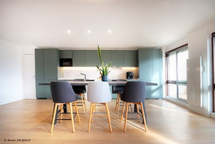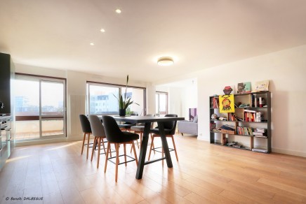 Traversant et baigné de lumière grâce à ses grandes baies vitrées, il offre une superbe pièce de vie de 47 m² comprenant un séjour spacieux et une cuisine aménagée et entièrement équipée, le tout ouvrant sur un grand balcon sans vis-à-vis, idéal pour profiter pleinement de l’extérieur.