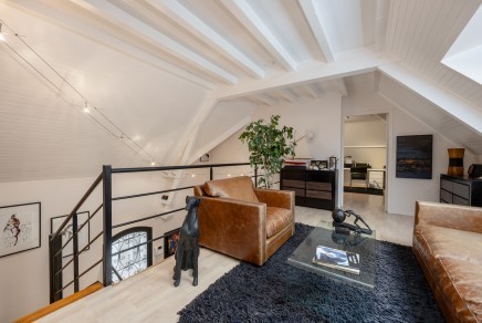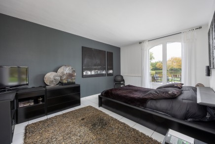 L’étage s’ouvre sur une mezzanine lumineuse, véritable espace de détente. Il dessert une suite parentale avec dressing et salle de bains, ainsi que trois chambres en enfilade et un WC, offrant de nombreuses possibilités pour accueillir famille et invités.