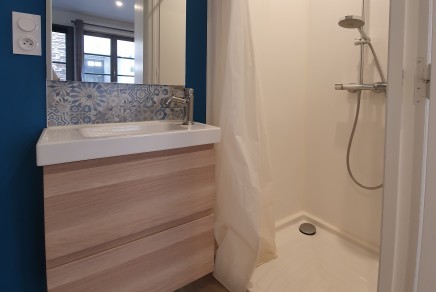 RENNES CENTRE-VILLE, rue Nominoé, studio meublé de 16.98 m² comprenant pièce principale avec kitchenette aménagée et équipée, placard, salle d'eau avec wc, libre le 26/04/2026, loyer : 488.00 €, charges : 65.00 € (comprenant chauffage, eau chaude, eau froide, wifi), honoraires agence : 220.74 € frais d'état des lieux inclus, DPE établi le 31/07/2024, DPE "D" (250), GES "A" (7), Estimation des coûts annuels d’énergie du logement entre 420 € et 610 € par an. 'Les informations sur les risques auxquels ce bien est exposé sont disponibles sur le site Géorisques : www.georisques.gouv.fr'