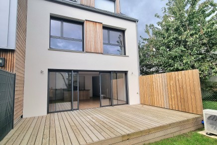 RENNES LORIENT ST BRIEUC, rue Etienne Pinault, maison neuve de 147.56m² comprenant entrée, lumineuse pièce de vie exposée sud de 40m² donnant sur terrasse, cuisine ouverte aménagée (four, plaques et lave-vaisselle), arrière cuisine, au 1er étage, dégagement, 3 chambres, salle de bains, bureau, buanderie, au 2ème étage, chambre avec salle d'eau, garage, terrain clos exposé sud, libre de suite, loyer : 2250€/mois, honoraires agence : 1622€ frais d'état des lieux inclus, DPE : A, GES : A, Les informations sur les risques auxquels ce bien est exposé sont disponibles sur le site Géorisques : www.georisques.gouv.fr